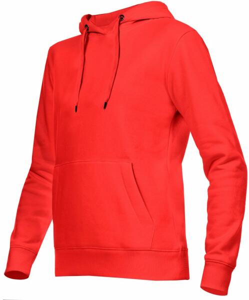A női pulóver kapucnival és kenguru zsebbel nagyon kényelmes viselet. A pulóver alsó szegélye és az ujjak végei rugalmas mandzsettával vannak lezárva. A pulóver kapucnija húzózsinórral összehúzható. Különleges szövésmóddal készült anyagból készült, amely rugalmasságot és kellemes viseletet garantál. A kapucnis pulóver dekoratív lapos varrásokkal rendelkezik, és címkék nélküli.
