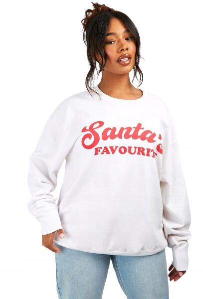 Boohoo T11202 Boohoo Fehér Női Pulóver Karácsonyi Plus Size Nyomtatás 50ALLEGRO