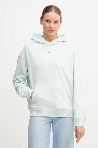 Calvin Klein pamut melegítőfelső sima, kapucnis, LV047D232G - türkiz L