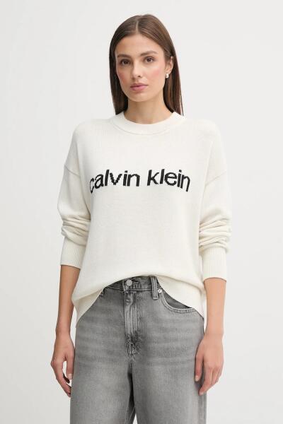 Calvin Klein pamut pulóver könnyű, bézs, LV047C311G - bézs M