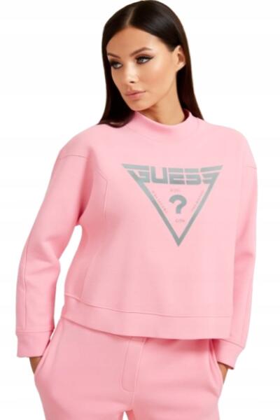 GUESS Rózsaszín Pamut Női Pulóver Kerek Nyakkivágással M Gxf