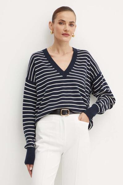 HUGO BOSS gyapjú pulóver könnyű, női, sötétkék, 50521913 - sötétkék XS