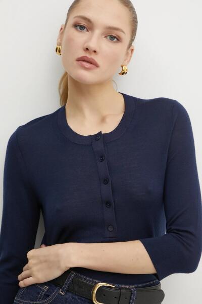 HUGO BOSS gyapjú pulóver könnyű, női, sötétkék, 50530711 - sötétkék L