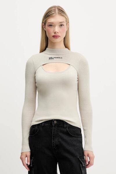 Karl Lagerfeld Jeans pulóver könnyű, bézs, félgarbó nyakú, A4W18013 - bézs M