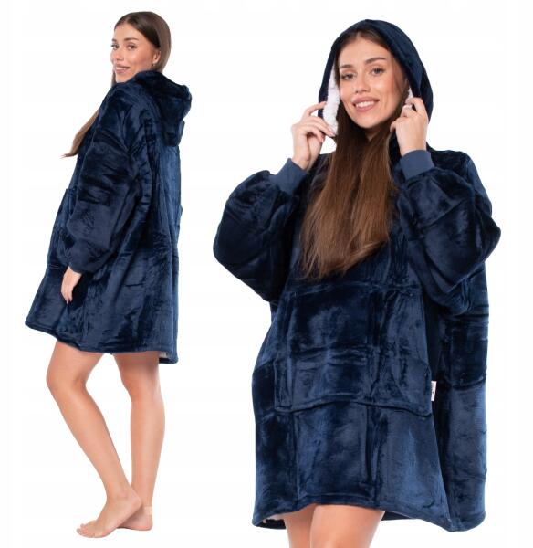Kocpulóver 2 az 1-ben, túlméretezett XXL kapucnival, vastag sherpa anyagból, sötétkék (KC00026)ALLEGRO