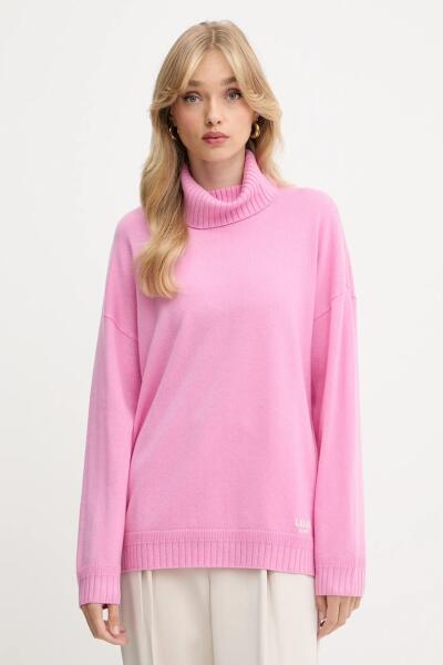 LIU JO gyapjú pulóver könnyű, rózsaszín, garbónyakú, TF5179. MS026 - rózsaszín S