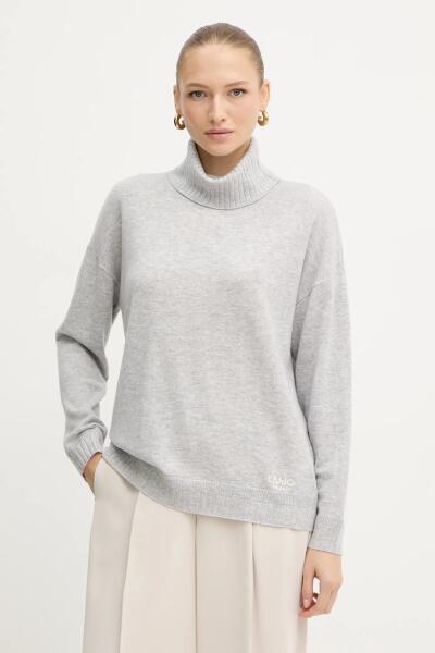 LIU JO gyapjú pulóver könnyű, szürke, garbónyakú, TF5179. MS026 - szürke M