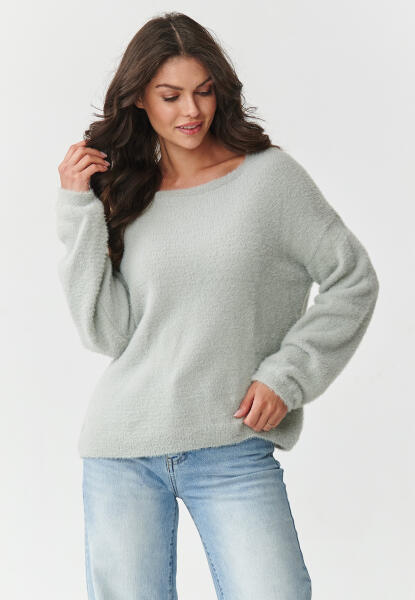 Ez a 100% poliamidból készült női pulóver a modern dizájnt ötvözi a kivételes kényelemmel. Puha tapintású és bolyhos, a pulóver puha takaróként öleli körül a testet, és kellemes meleget biztosít a hidegebb napokon. A laza szabásvonal enyhén ejtett vállal könnyedséget és lazaságot kölcsönöz neki, így ideális hétköznapi és alkalmi viseletre egyaránt. A klasszikus csónaknyak-kivágás tovább hangsúlyozza a vállak és a nyak nőies vonalát, míg a puha szegéllyel ellátott bő ujjak egész napos kényelmet biztosítanak. Farmerrel, szoknyával vagy leggings-szel ideális, ez a modell gyorsan a ruhatárad alapdarabjává válik. Összetétel: 100% poliamid Egy méret Mellbőség2x50Alsó szélesség2x52Hossz58