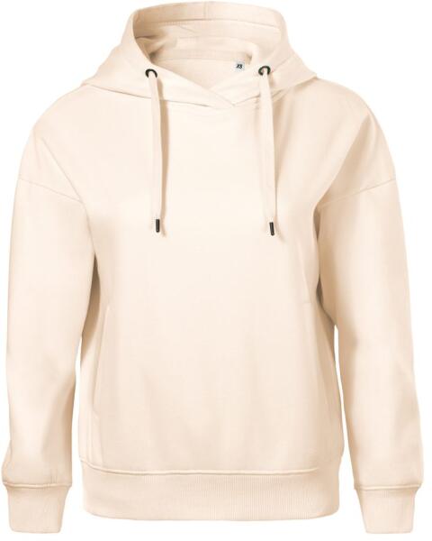 Kényelmes női pulóver, amely oldalsó varrásokkal ellátott laza szabásának köszönhetően nem korlátozza a mozgást. A bélelt és húzózsinórral ellátott kapucni praktikus és modern megjelenést kölcsönöz a pulóvernek. A pulóver kenguru zsebbel rendelkezik az apróbb holmik számára. Az alacsonyan tűzött ujjak kiemelik a pulóver egyedi kialakítását. Az alsó szegély és az ujjak mandzsettái 5% elasztánnal készült bordás kötésből készültek, amely biztosítja, hogy a szegélyek megtartják alakjukat és nem nyúlnak. Belseje szálcsiszolt, így minden helyzetben meleget és kényelmet biztosít. A kapucnis pulóver többféle színben kapható, és alkalmi viselethez és sportoláshoz egyaránt alkalmas.