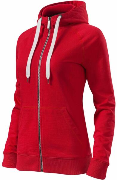 Női pulóverFutter, hurkolt belső oldal100 % pamut (a 12-es szín esetében az anyagösszetétel eltérő lehet - 85 % pamut és 15 % viszkóz; 65 % pamut, 35 % poliészter)enyhén karcsúsított szabás oldalvarrássalfémcipzár teljes hosszbancipzár húzóka gravírozott logóvalzsinórral összehúzható, bélelt kapucnibelső nyakrész szegéllyelraglán ujjak díszítő varrássalrávarrt kenguru zsebek2:2 bordás kötésű szegély és mandzsetták 5 % elasztánnalkontraszt elemekhurkolt belső oldalanyagvastagság: 320 g/m2