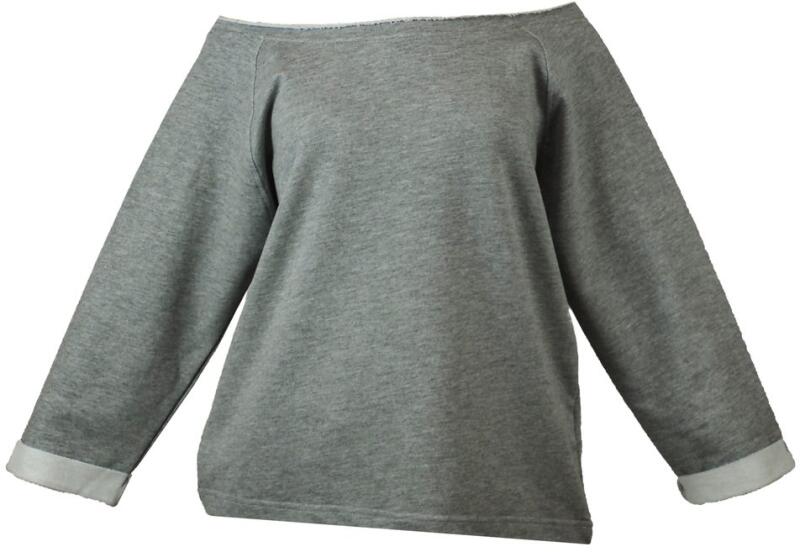 Stílusos női pulóver kiváló minőségű organikus pamutból, mely újrahasznosított poliészter szálakkal van kombinálva. Modern, lezser szabású és széles csónaknyakú pulóver. 3/4 hosszúságú raglan ujjak, divatos hajtással befejezve. A nyakkivágás szegélye nem varrott, így a pulóver lezser és fiatalos megjelenésű. A pulóver alsó szegélye egyenes, és a belső címke pedig letéphető.