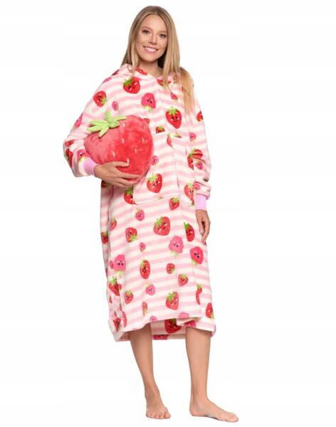 Moraj Rózsaszín kapucnis pulóver zsebbel Eper, uni, oversize (PDD5100-011)ALLEGRO
