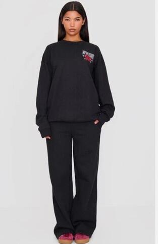 Prettylittlething Fekete Hosszú Ujjú Pulóver Print Klasszikus Prettylittlething Xs