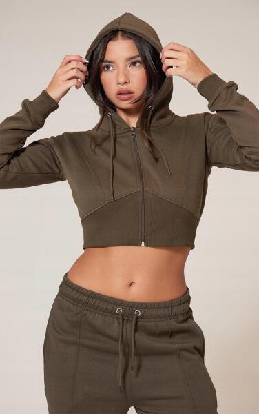 Prettylittlething kapucnis pulóver, Size M, zöld, cipzárosALLEGRO