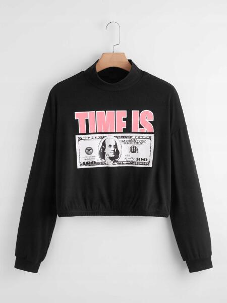 Shein WC25211 Shein Pamut Rövid Pulóver Nyomott Mintával És Húzózsinórokkal 50
