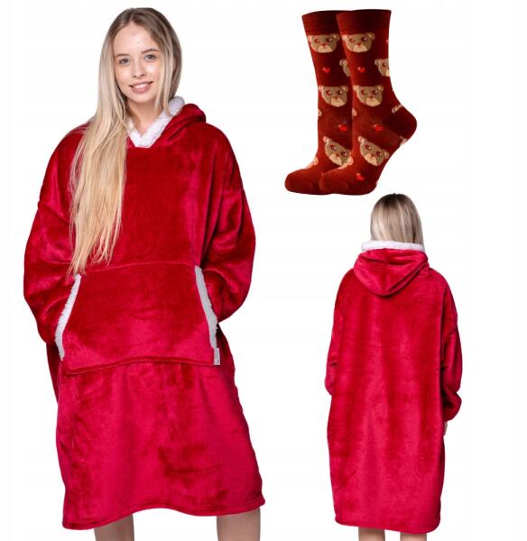 Takaró Pulóver Oversize Meleg Takaró Pulóver 2in1+ZOKNI Szőrme Pulóver Takaró Ajándék (Koc bluza OVERSIZE ciepła 2W1 futrzak)