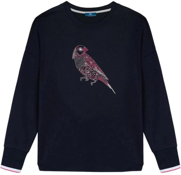 TBS női A TBS Imaniron női pulóver tökéletesen egyesíti a francia sikket és a maximális kényelmet! Különleges madármintája pillanatok alatt egyedivé varázsolja összeállításaid. Lezser szabása minden típusú alkaton hízelgően mutat, és az optimális viselési komfort mellett mozgásszabadságod is biztosítja. Kimagaslóan puha pamutkeverék anyaga könnyű, a hőszigetelő képessége nagyon jó, és minden egyes szálja lélegzik, mely tulajdonságainak köszönhetően a pulóver a szellőzőképesség csorbítása nélkül tart melegen a hűvösebb átmeneti időjárási viszonyok között is. Kombináld kedvenc TBS nadrágoddal, és élvezd a kényelmet stílusosan!