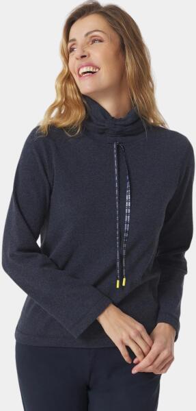TBS női A nagyon puha, könnyű TBS Plimatee női pulóver a francia márka sportos újdonsága. A lezser szabás és a négy irányban elasztikus anyag konstrukció maximális mozgásszabadságodért felel, ugyanakkor minden típusú alkaton nőiesen mutat, és a réteges technikai öltözködést is lehetővé teszi. A pulóver pamutkeverék anyaga biztosítja a pára bőrfelületről való elvezetését, ezáltal támogatva testünk természetes hőszabályzó folyamatait aktív testmozgás esetén is, ugyanakkor megőrzi annak hőjét, és melegen tart anélkül, hogy súlyos rétegekre lenne szükség. Jól lélegző anyagról van szó, amely az egész élettartama alatt megőrzi e tulajdonságait. A húzózsinórral állítható, magas gallér kívül rekeszti a hideg szelet. A sötétkék színárnyalat és a laza sikk párosítását egyszerűen beillesztheted gardróbodba.