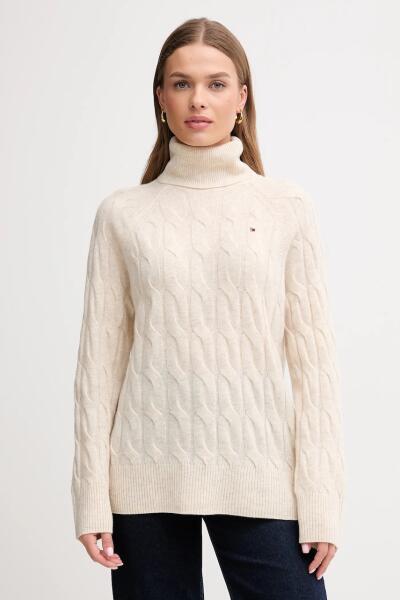 Tommy Hilfiger gyapjú pulóver könnyű, bézs, garbónyakú, WW0WW46791 - bézs L - answear - 49 060 Ft