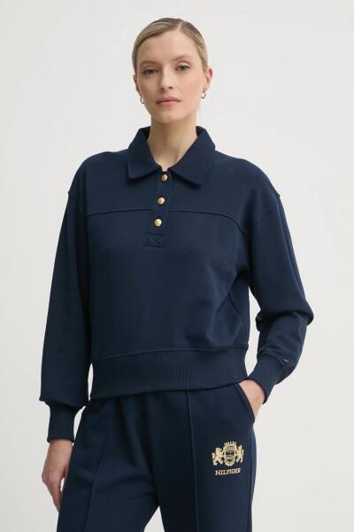 Tommy Hilfiger pamut melegítőfelső sötétkék, női, sima, WW0WW44081 - sötétkék S