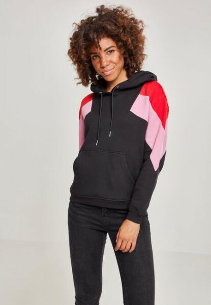 Urban Classics Ladies Oversize 3-Tone Block Hoody blk/firered/coolpink